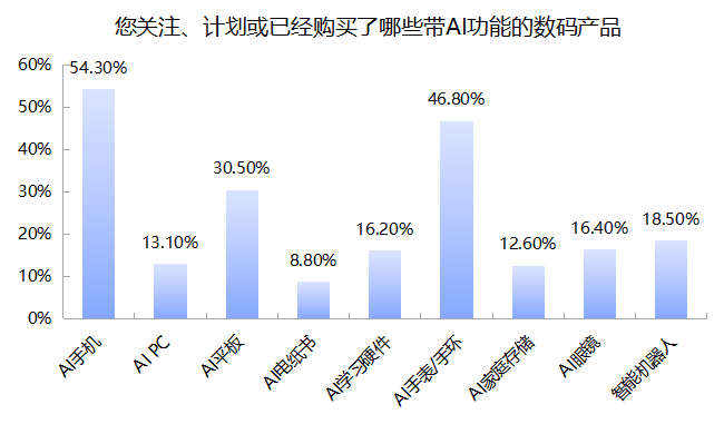 带AI功能数码产品关注度高 AI手机最抢手